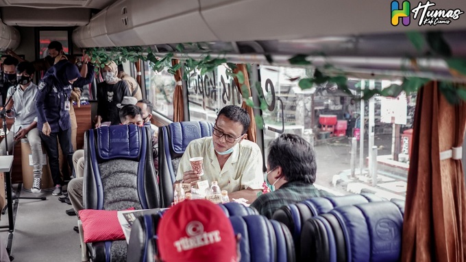 Dengan sensasi suasana kafe di dalam bus, para wisatawan akan diajak menikmati nikmatnya kopi sembari berkeliling kota Ciamis.