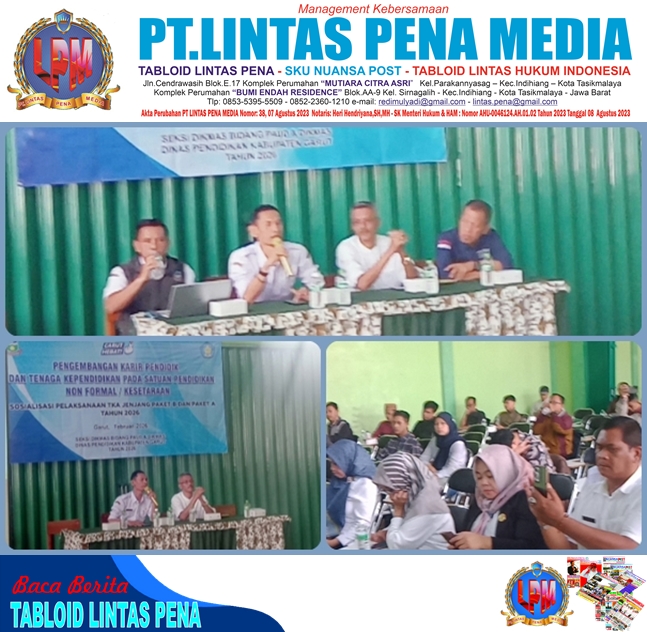 Garut, LINTAS PENA —-Pada hari Rabu ( 11/2/2026 ) bertempat di Aula ruang praktek siswa SMK Ma’arif Garut jln Pembangunan kelurahan Jayawaras kecamatan Tarogong Kidul Garut sedang diselenggarakan kegiatan dari Dinas Pendidikan kabupaten Garut Seksi Dikmas bidang Paud dan Dikmas, dihadiri PLT Kabid bidang Paud dan Dikmas Iyan Sofiyan Sip, ketua forum PKBM kabupaten Garut berserta kepengurusannya dan beberapa lembaga PKBM wilayah Tengah juga penilik .