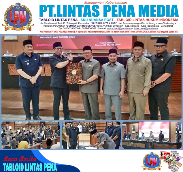 Kota Tasikmalaya, LINTAS PENA—Pada hari Senin 30 Maret 2026, DPRD Kota Tasikmalaya telah menggelar rapat paripurna dengan agenda utama Penyampaian Laporan Keterangan Pertanggungjawaban (LKPJ) Walikota Tasikmalaya Tahun 2025 dan sekaligus pembentukan Pansus Pembahas LKPJ Wali Kota Tasikmalaya tahun 2025. Rapat paripurna tersebut dipimpin langsung oleh Ketua DPRD Kota Tasikmalaya H. Aslim, SH., M.Si.