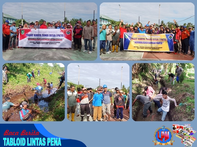 Bengkalis,LINTAS PENA—-Kepala Desa Sejangat Rahcmad Iwandi SH bersama aparat desa dan warga masyarakat Desa Sejangat melaksanakan kegiatan padat karya tunai (PKT) Dana Desa (DD) tahun 2025, yaitu pembersihan Sungai Yahya dan Sungai Atan Gani , hari Kamis 14 Agustus 2025.
