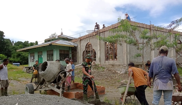“Pembangunan Masjid Nurun Ala Nur ini, dalam kegiatan karya bakti di masjid, Satgas bersama warga saling bahu membahu untuk melaksanakan karya bakti membantu pengecoran bangunan masjid,” ucap Mashud Saleh selaku imam masjid.