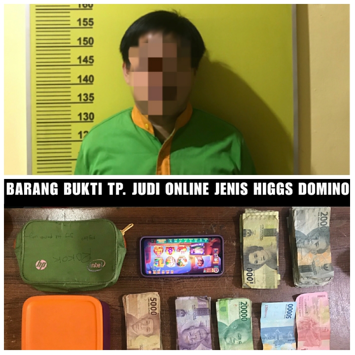 Dari tangan pelaku, polisi menemukan barang bukti berupa satu unit handphone merek Vivo 2007, satu buah kotak Tupperware sebagai tempat penyimpanan uang hasil jual beli chip Higgs Domino sebesar Rp 408.000. Dengan rincian, selembar uang pecahan Rp100.000, selembar uang pecahan Rp50.000, uang pecahan Rp 10.000 sebanyak 12 lembar, uang pecahan Rp20.000 sebanyak 3 lembar, uang pecahan Rp5.000 sebanyak 10 lembar, uang pecahan Rp 2.000 sebanyak 7 lembar, dan sebanyak 14 lembar uang pecahan Rp1.000.