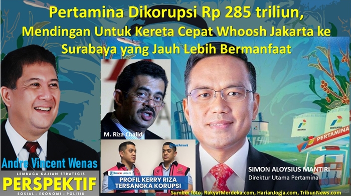 Itu sketsa besarnya. Baru-baru ini dilaporkan skandal korupsi terkait Riza Chalid yang telah merugikan negara totalnya sampai Rp 285 triliun!!! Bandingkan dengan proyek Kereta Cepat Whoosh Jakarta-Bandung yang “cuma” Rp 120 triliun. Pertamina (atau Indonesia) dikorupsi habis percuma, bayangkan kalau dengan duit segitu proyek Kereta Cepat Jakarta ke Surabaya tentu bisa dibiayai dengan mudah.