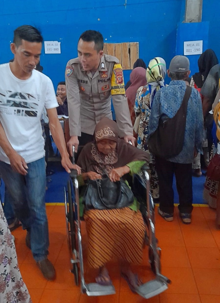 Dia menambahkan, pada kesempatan itu Bhabinkamtibmasnya juga membantu seorang nenek yang menggunakan kursi roda untuk menerima Bansos. “Dibantu diberikan pelayanan, sebagai bentuk kepedulian Polri dalam melayani masyarakat,” pungkasnya.(001)****