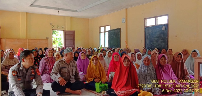 KOTA TASIKMALAYA—Kanit Binmas Polsek Tamansari IPDA Asep Farid memberikan Pembinaan dan Penyuluhan kepada warga pengajian mingguan Majelis Taklim Al Mubarok Kampung Selakaso Kelurahan/Kecamatan Tamansari Kota Tasikmalaya, Selasa (06/12/22)