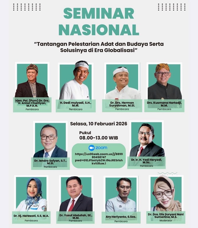 Terkait situasi dan kondisi kearifan lokal budaya yang kian hari semakin tergerus keberadaannya, Lembaga Independen Tradisi Adat Sejarah dan Budaya Nusantara (Lintas Budaya Nusantara), hari Selasa, tanggal 10 Februari 2026 lalu, di bulan Bahasa Indung ini, berkiprah untuk mengingatkan dan ikut serta mengenalkan kembali adat dan budaya Sunda khususnya, agar para Gen Z lebih mengenal, mempelajari, bahkan ikut serta berperan serta menjaga dan melestarikan eksistensi budaya agar tidak punah ditelan zaman, melalui kegiatan Seminar Nasional secara daring/zoom, dengan mengusung tema “Tantangan Pelestarian Adat dan Budaya, serta Solusinya di Era Globalisasi”.