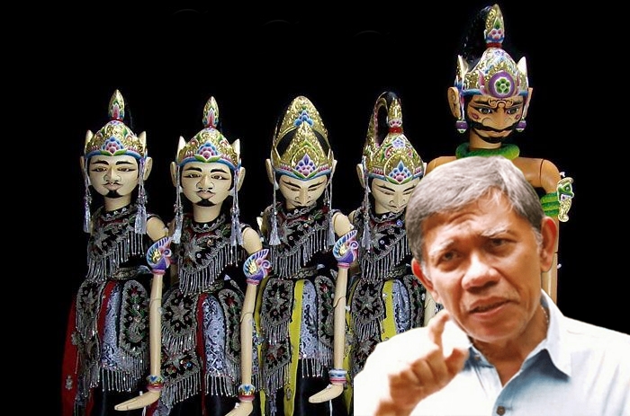 [Gamelan menggelegar penuh kemenangan, kelir menunjukkan panorama Indonesia hijau dengan para Pandawa, Kresna, dan Semar berdiri gagah membela alam tropika.]